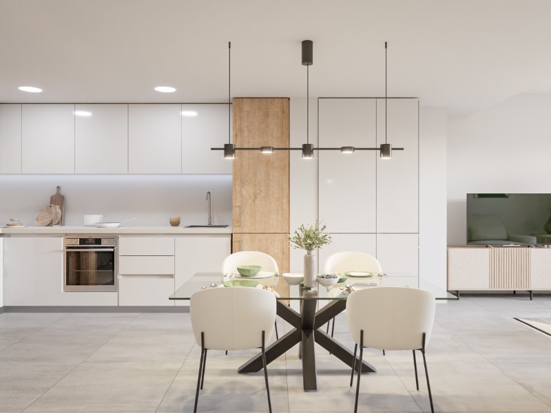 Cuatro apartamentos con 2 dormitorios, 2 baños, terraza de 8 m2 y amplios solárium de entre 64 y 96 m2. Las propiedades situadas en los extremos del edificio tienen acceso privado al solárium, contribuyendo a la privacidad y exclusividad de esta área.